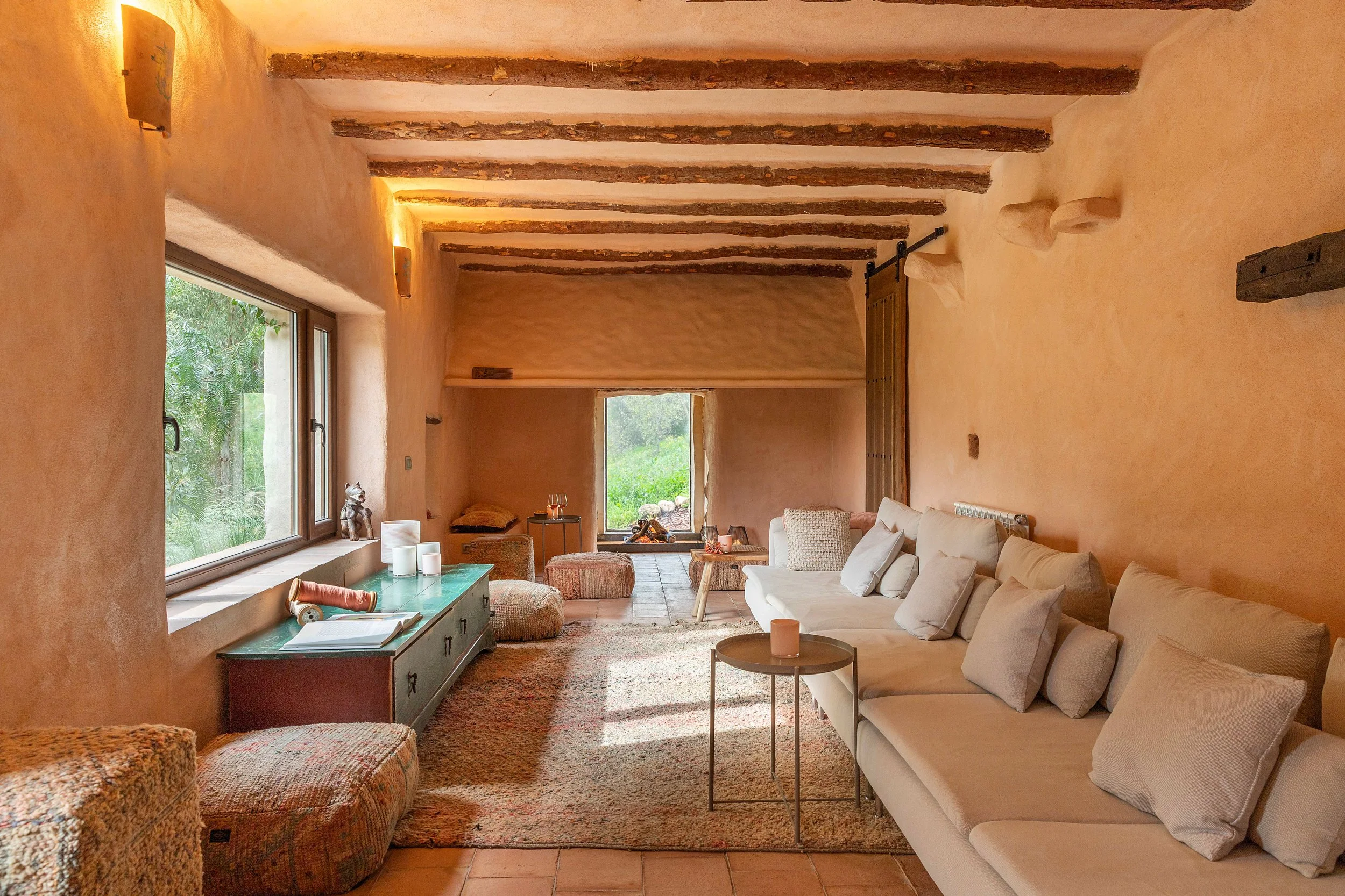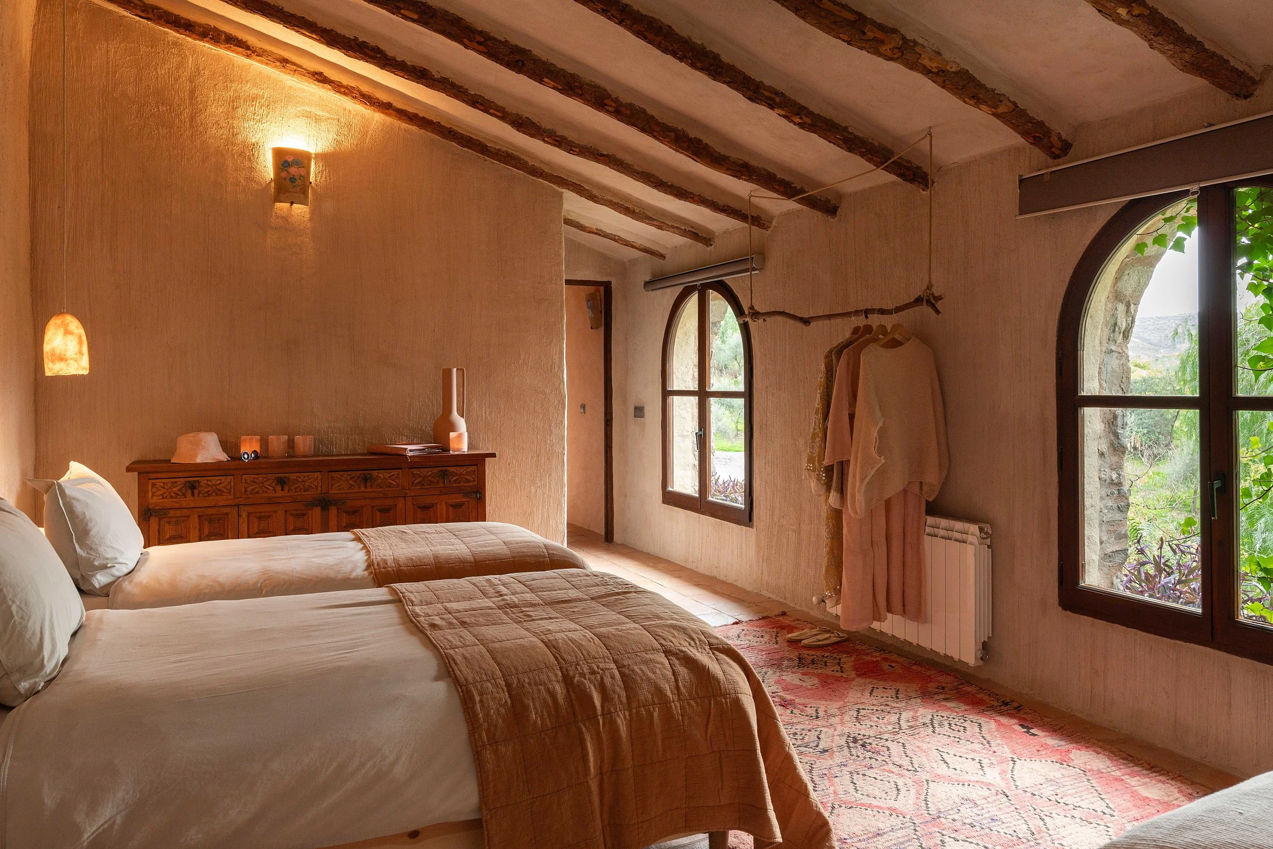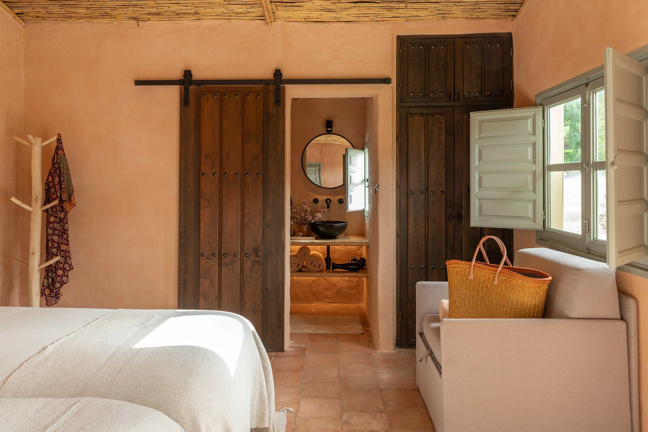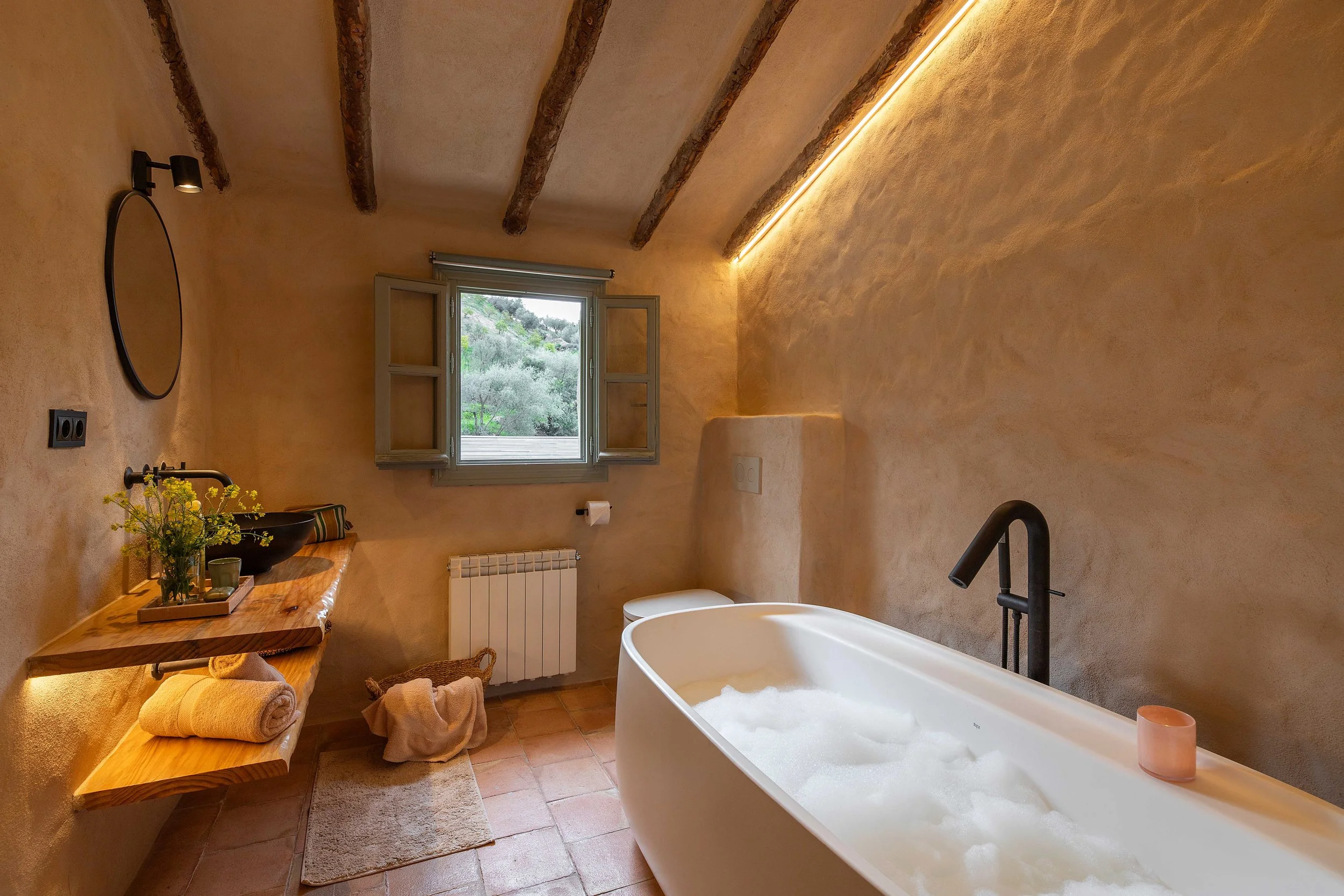 In the quiet countryside of Malaga, our home for four nights and five days will be a beautifully renovated water mill, a peaceful sanctuary inspired by the natural surroundings. The house is spacious, comfortable, and is the perfect landing place for the stilling we crave. The cosy lounge area and rooms are thoughtfully decorated in a rustic-chic Mediterranean style, with interiors that have a warm atmosphere - think soft earth tones on the walls and terracotta tiles underfoot.